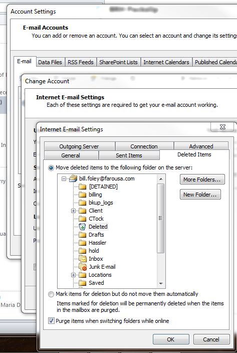 Change Account—Internet Email Settings—Deleted Items—select 'Deleted' folder—OK?
